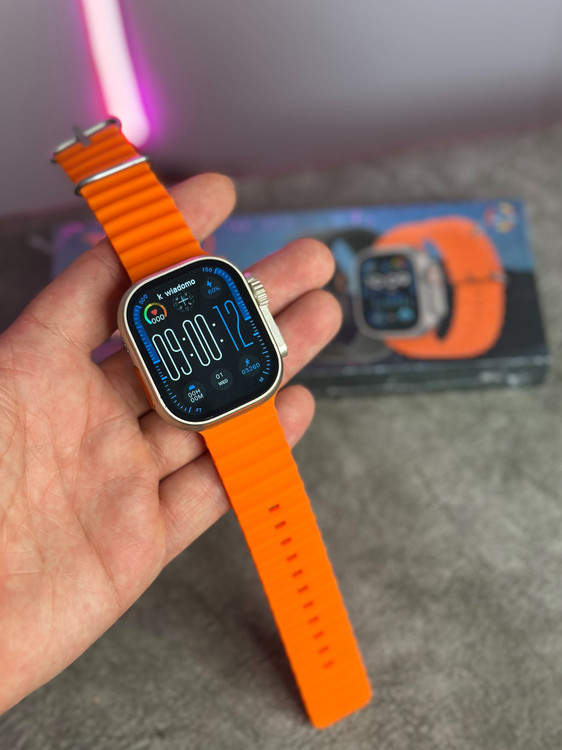 این مدل از سری اولترا طرح اپل واچ است با سایز ۴۹ میلی متر که ۳ دکمه پاور، اکشن باتن و مجیک باتن فعال دارد. در پشت بدنه نیز پیچ و پین بند و محل شارژ ساعت را مشاهده میکنید.