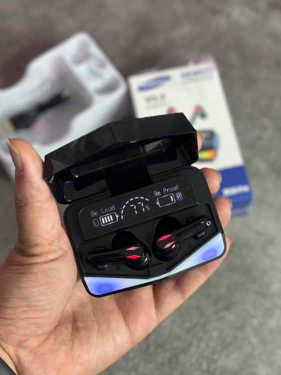 هندزفری تاچ میباشد و کلیه دستورات همچون قطع و رد تماس پاسخ به تماس . کم و زیاد کردن صدا . تعویض موزیک و غیره با لمس کردن گوشی چپ و راست صورت میگیرد درب آینه ای نشانگر میزان شارژ محفظه و هر گوشی به صورت مجزا دارای ویژگی تغییر تم هندزفری بین گیمینگ و حالت موسیقی