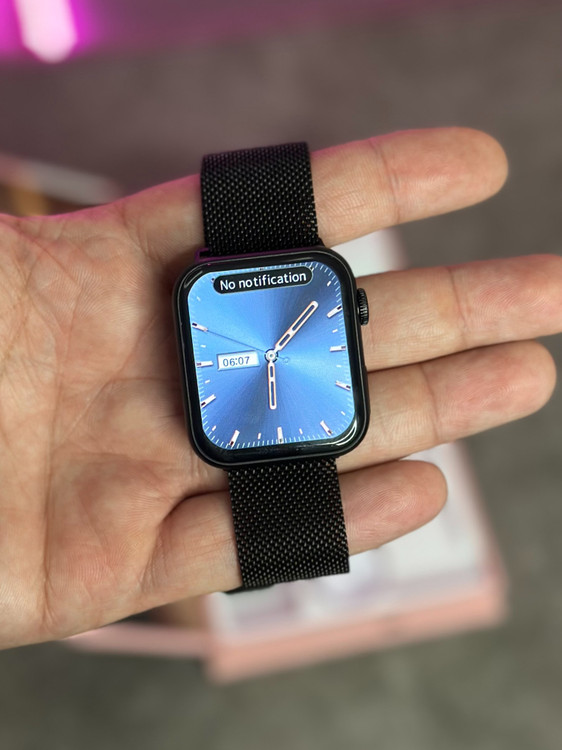 ساعت هوشمند طرح اپل واچ مدل WISME-X29 Mini از ساعت های سری 10 طرح اپل واچ است که سایز 41 میلی متر دارد و مناسب دست خانم ها و نوجوانان است و در دو رنگ رزگلد و مشکی طراحی شده است. درون جعبه آن 3 عدد بند وجود دارد که بتوانید با ساعت هماهنگ کنید. یکی از بند ها از نوع میلانس است و جنس فلزی و زیبایی دارد که مورد پسند بسیاری از خانم های جوان است.