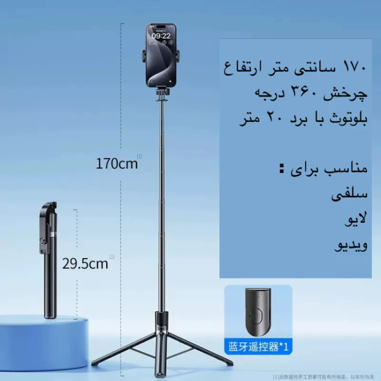 | سایر توضیحات | سه پایه ضد لرزش- دارای ریموت کنترل- بدنه مقاوم - حمل و نقل آسان و سبک- تنظیم ارتفاع تا ۱.۷ متر |