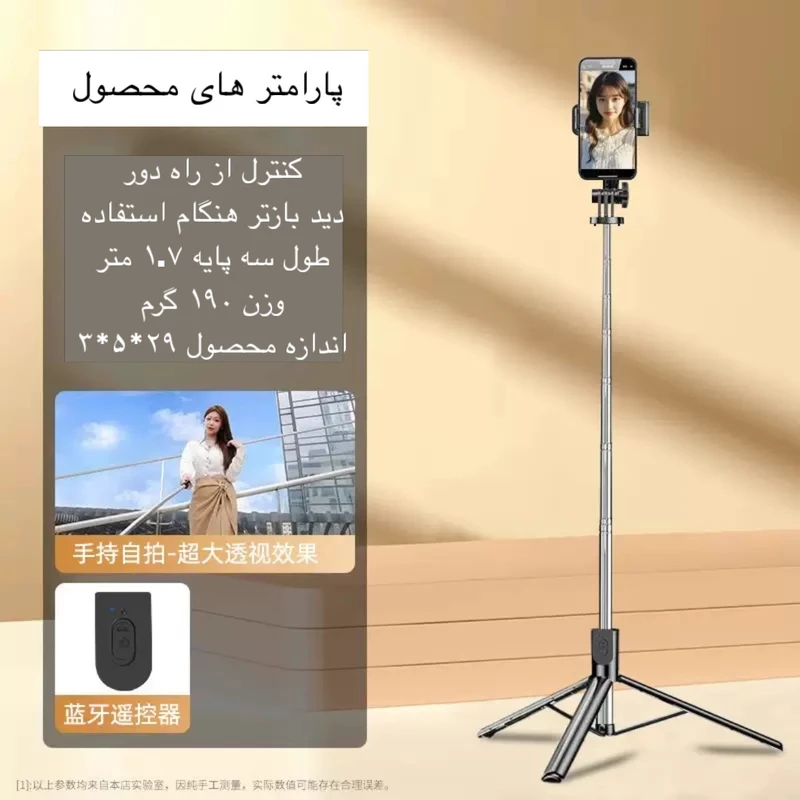 | سایر توضیحات | سه پایه ضد لرزش- دارای ریموت کنترل- بدنه مقاوم - حمل و نقل آسان و سبک- تنظیم ارتفاع تا ۱.۷ متر |