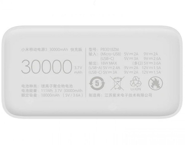 پاوربانک شیائومی مدل PB3018ZM ظرفیت 30000 اصل